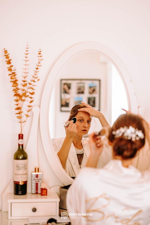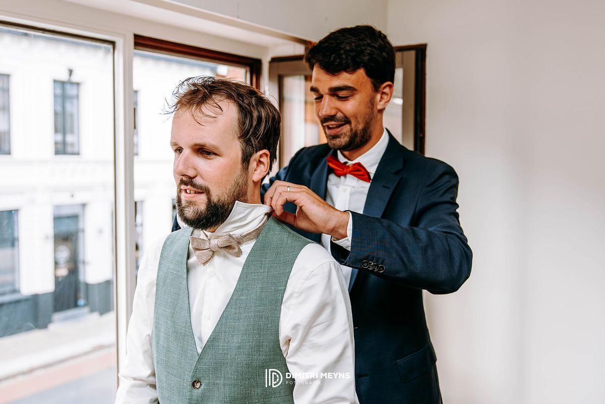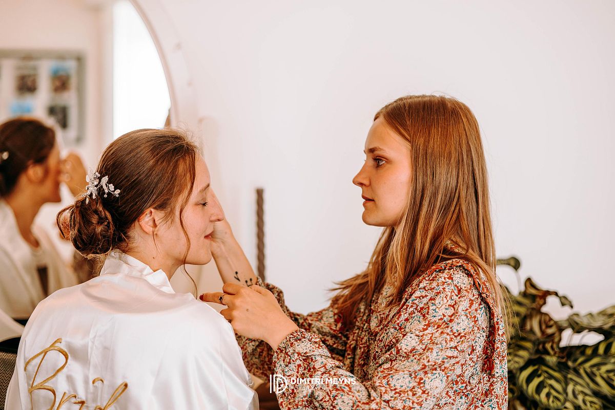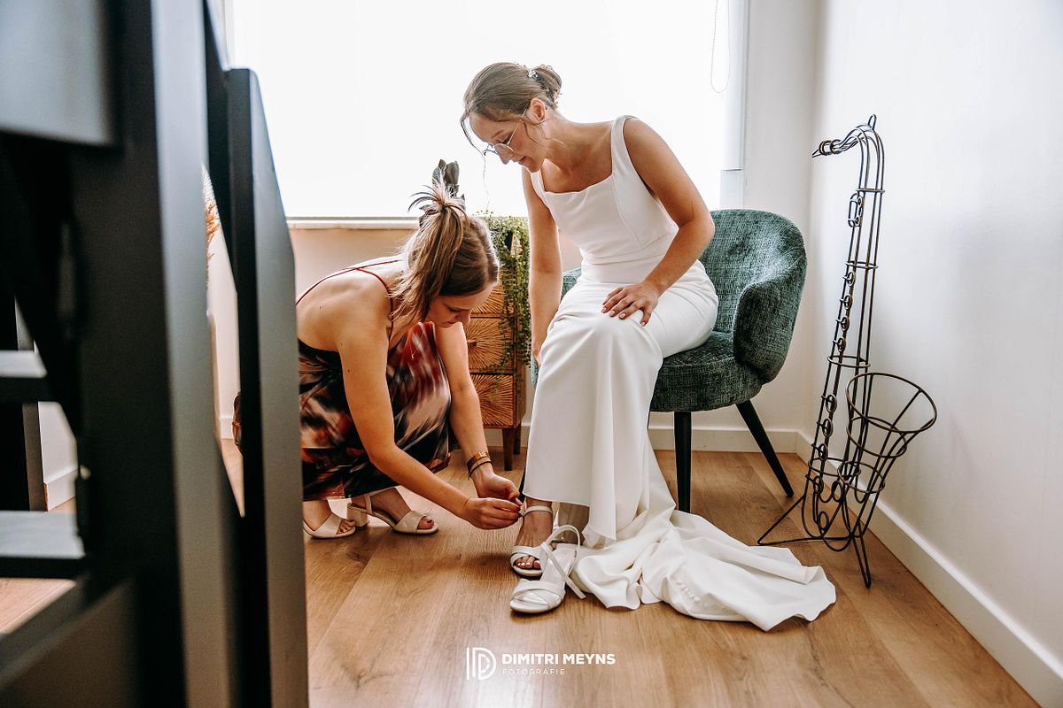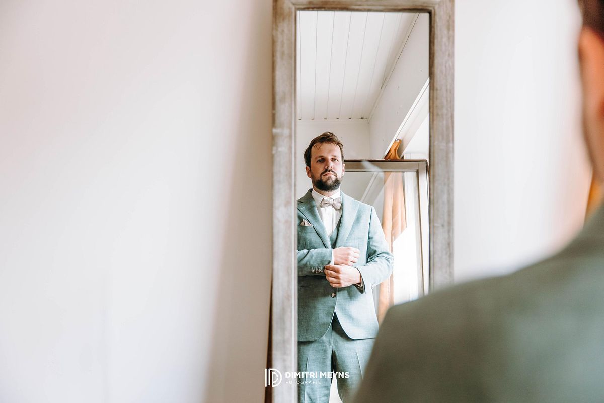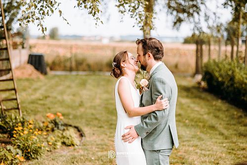 Op zaterdag 26 juli 2025 gaven Yana en Olivier elkaar het jawoord op een zomerse dag vol liefde, stijl en onvergetelijke momenten. De dag begon in alle rust in hun gezellige woning in Eernegem, waar zowel Yana als Olivier zich voorbereidden op wat de mooiste dag van hun leven zou worden. Daar, in de vertrouwde omgeving van hun thuis, vond ook de intieme en emotionele first look plaats – een prachtig moment dat de toon zette voor de rest van de dag.
