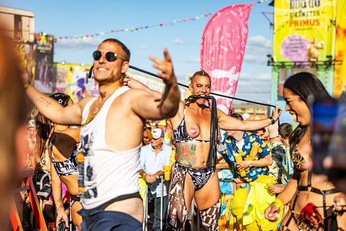 Ik dook met mijn camera de Spoiler Room in, waar verschillende dj’s elkaar afwisselden en het publiek bij elk nummer nog een beetje losser ging. Even later stond ik oog in oog met een performance van Hott.be, waarbij er luidkeels werd aangemoedigd tijdens een opvallend staaltje spanking. Overal om me heen gebeurde iets onverwachts: vrouwen die elkaar spontaan kusten, vrienden die elkaar lachend optilden, en onbekenden die samen een dans begonnen alsof ze elkaar al jaren kenden.
