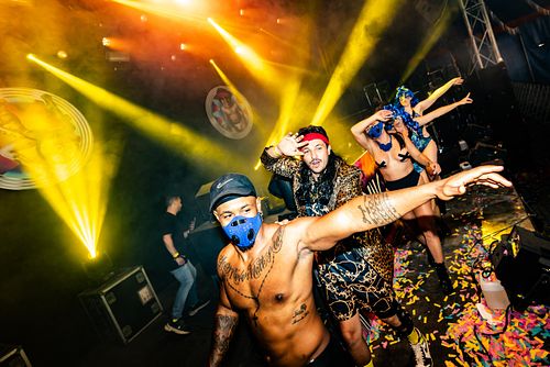 Zodra ik het terrein opliep, werd ik omringd door felle kleuren, glitter en de meest absurde outfits die je je kunt voorstellen. Van mensen in trainingspakken vol tijgerprint tot pruiken in neonkleuren en zonnebrillen groter dan hun gezicht – iedereen leek een rol te spelen in dit bizarre, vrolijke theater.