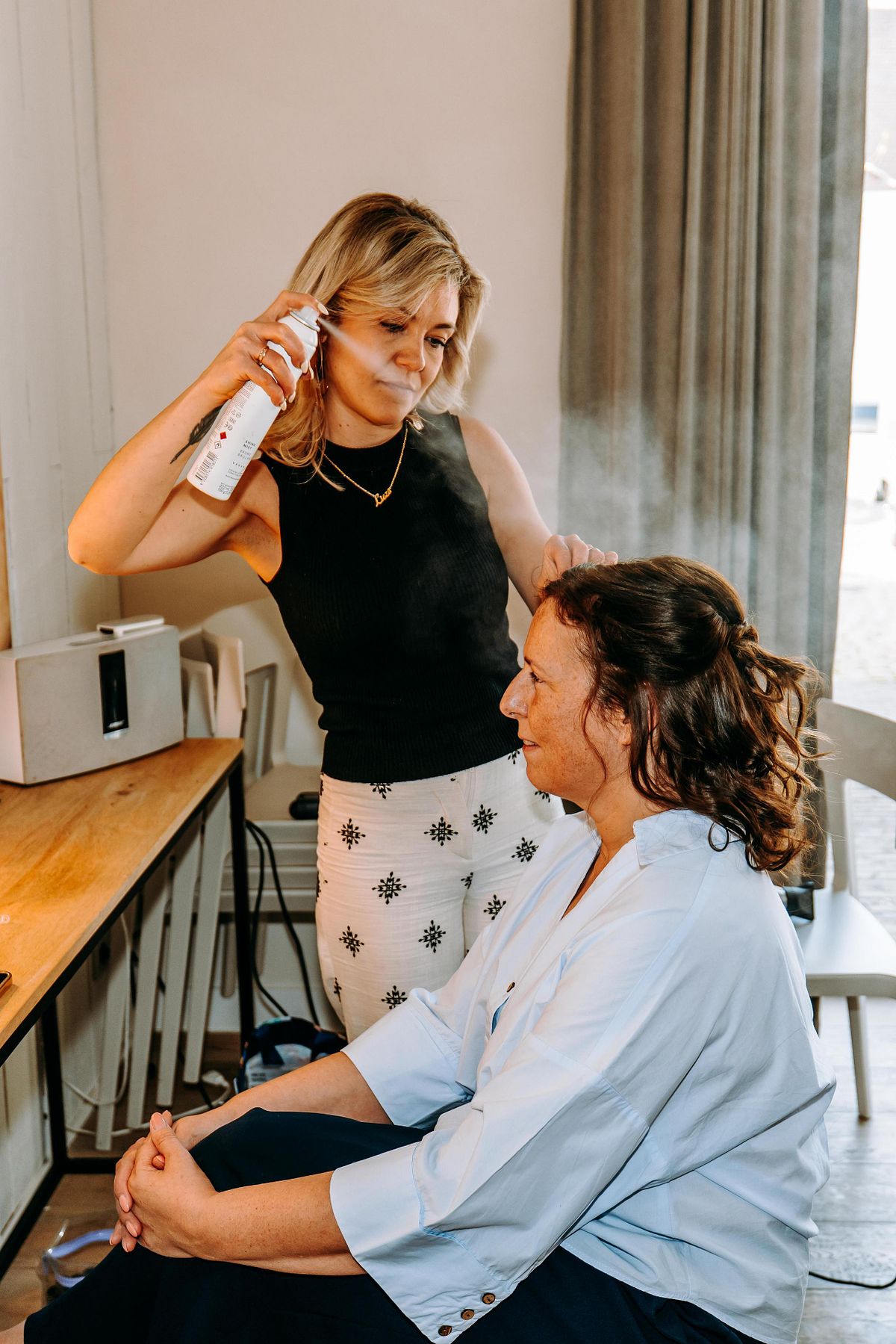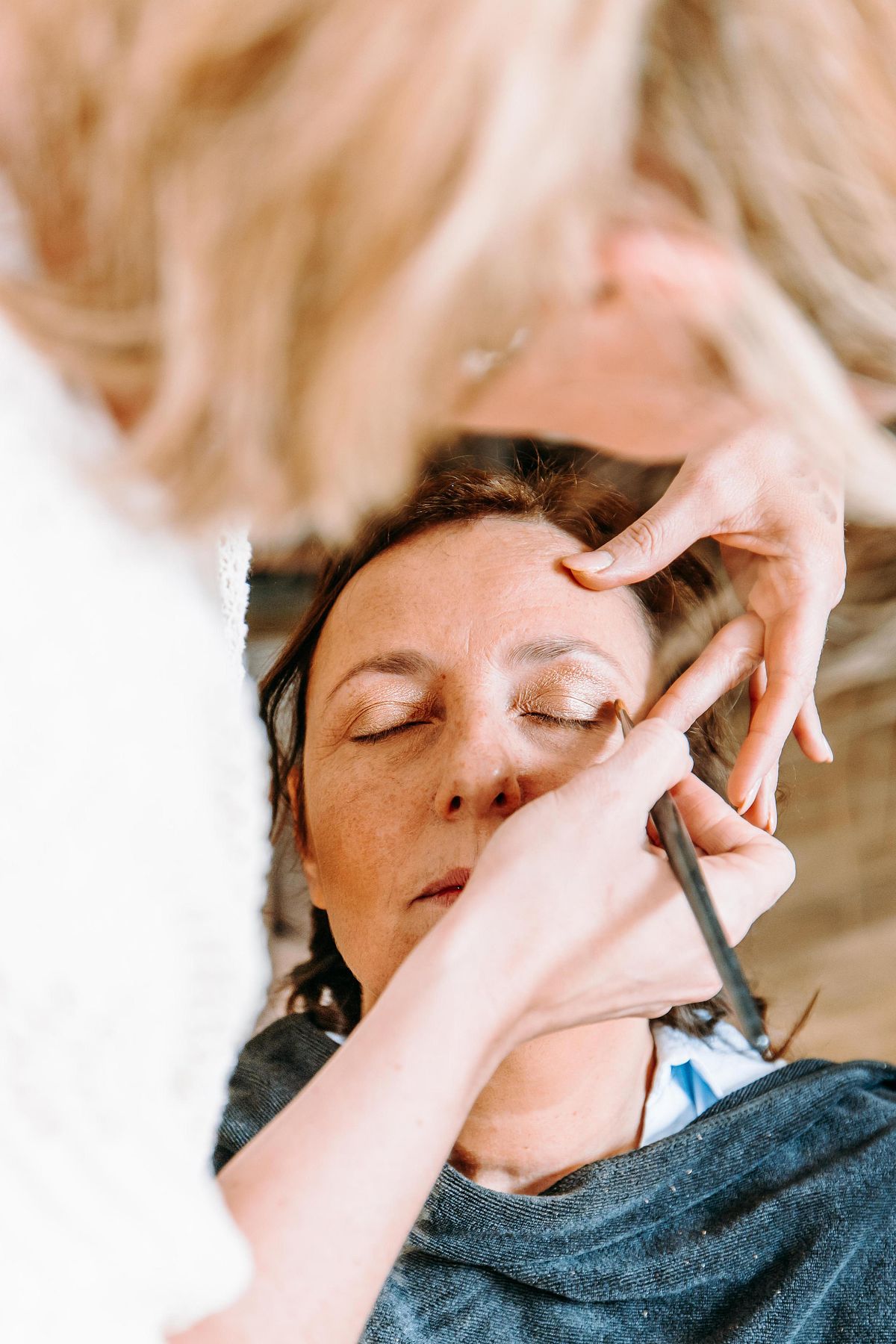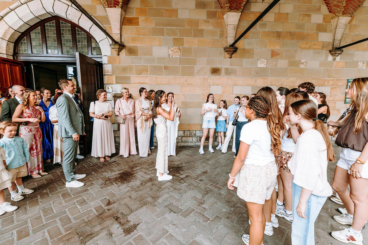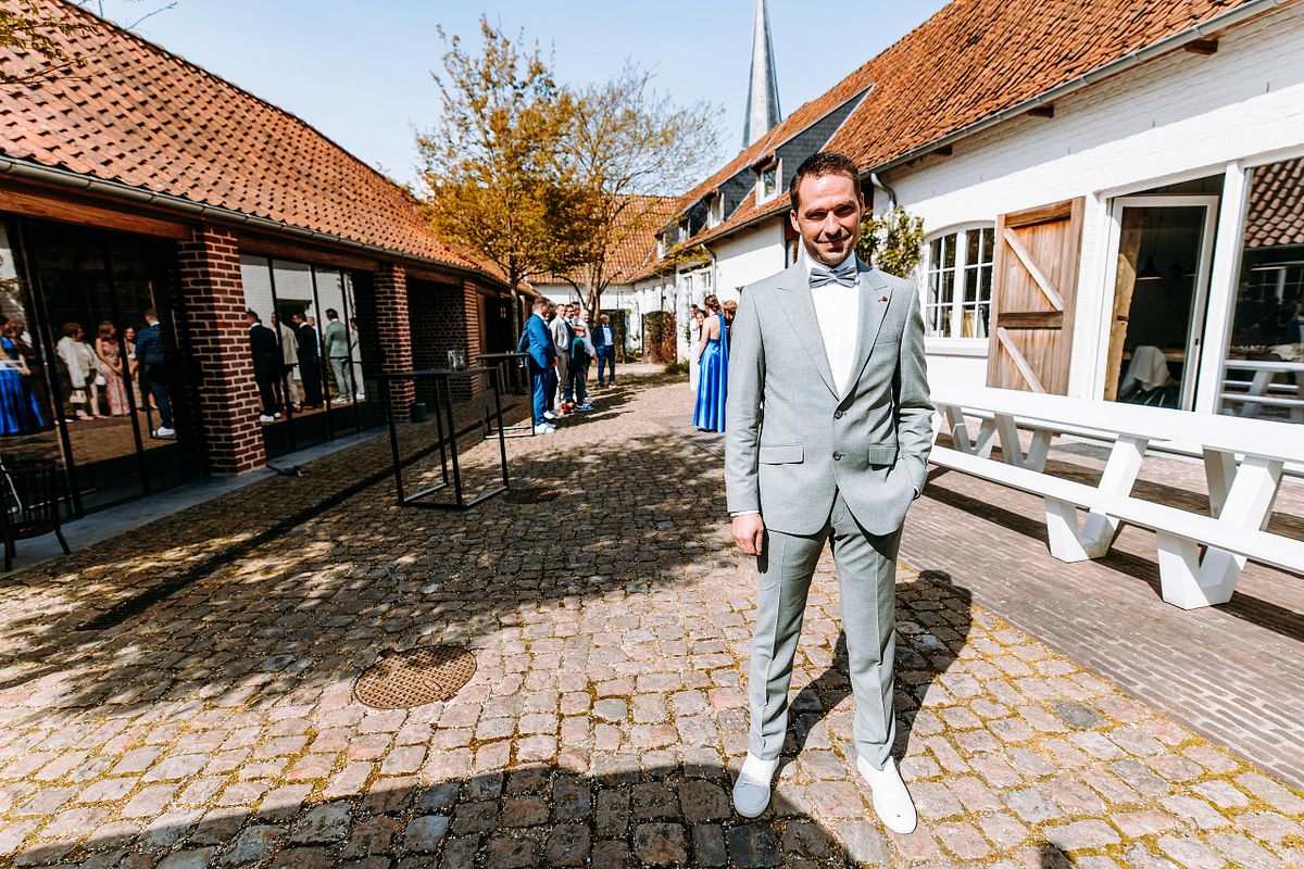 De dag begon in alle rust in het Douviehuis. Geen haast, geen spanning die overneemt — gewoon samen met familie, dicht bij elkaar. Terwijl de voorbereidingen zachtjes op gang kwamen, zorgde Instituut Hilde Declerck voor de make-up. Alles klopte, zonder dat het geforceerd voelde.