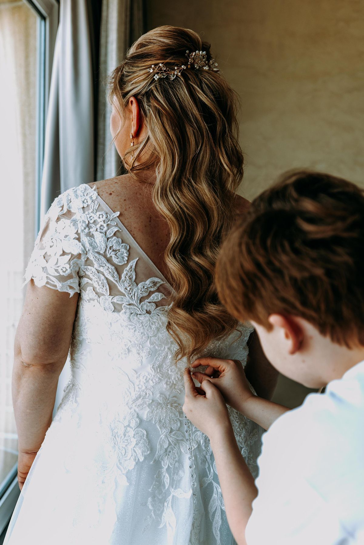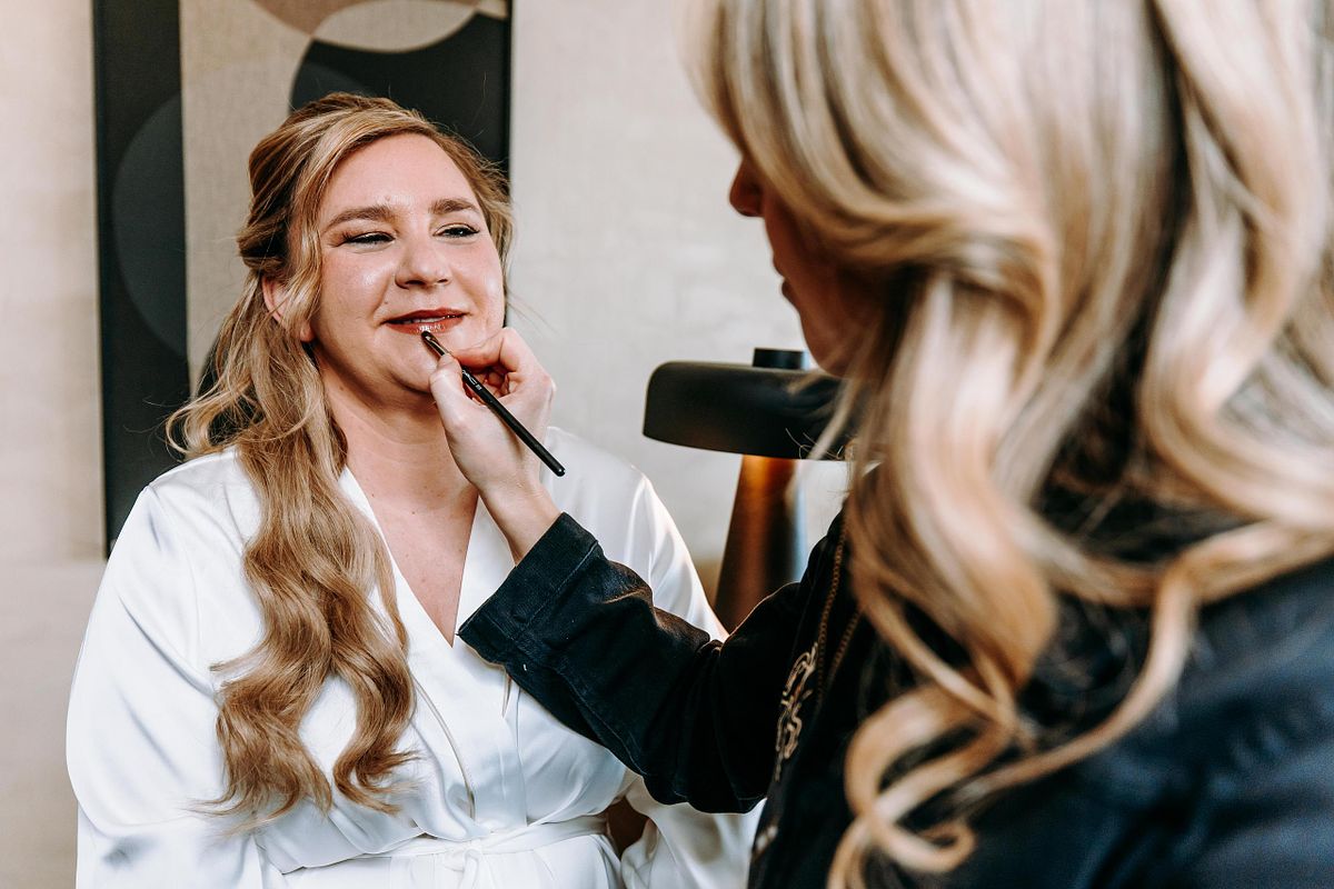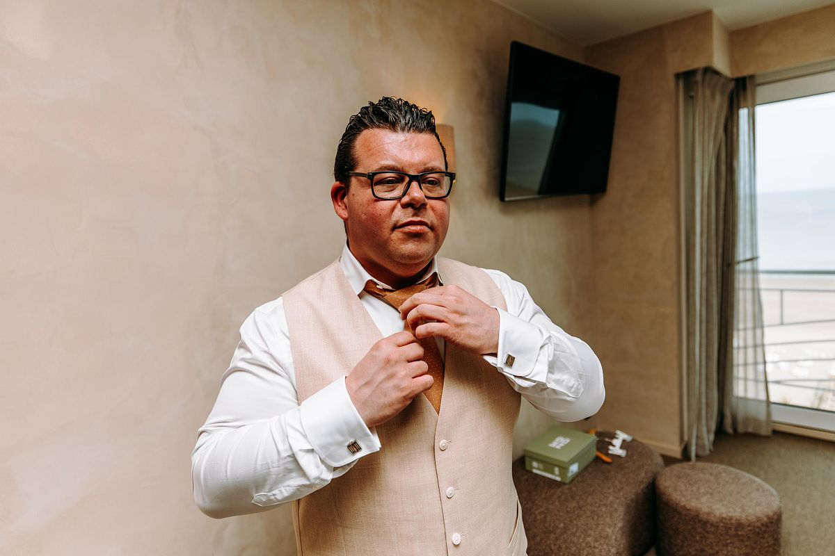 De dag begon in Hotel Beach Palace, met zicht op de dijk van Blankenberge. Buiten nog rustig, binnen die fijne mengeling van spanning en enthousiasme. Cindy en Kim maakten zich klaar, elk op hun eigen tempo, met kleine blikken en momenten die alles zeiden. De make-up werd verzorgd door O My Lily – by Isabeau Vuchelen, en dat zachte, natuurlijke gevoel liep eigenlijk door in de hele ochtend. Geen drukte, geen haast. Gewoon genieten van wat eraan kwam.